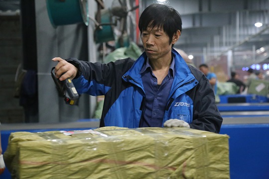 2014年8月,30歲的邵金光將5歲大的女兒和8個月大的兒子托付給家人,成為了中通河南漯河轉(zhuǎn)運(yùn)中心到件掃描組的一員。由于工作忙碌,她不得不給小兒子斷了奶;冬季嚴(yán)寒,她的雙手長出了凍瘡,每天下班用辣椒水涂抹消腫后第二天照常投入工作。一年多時間以來,除了過年,邵金光從未休息過,她也因此成為了同事們眼中的“模范標(biāo)兵”。